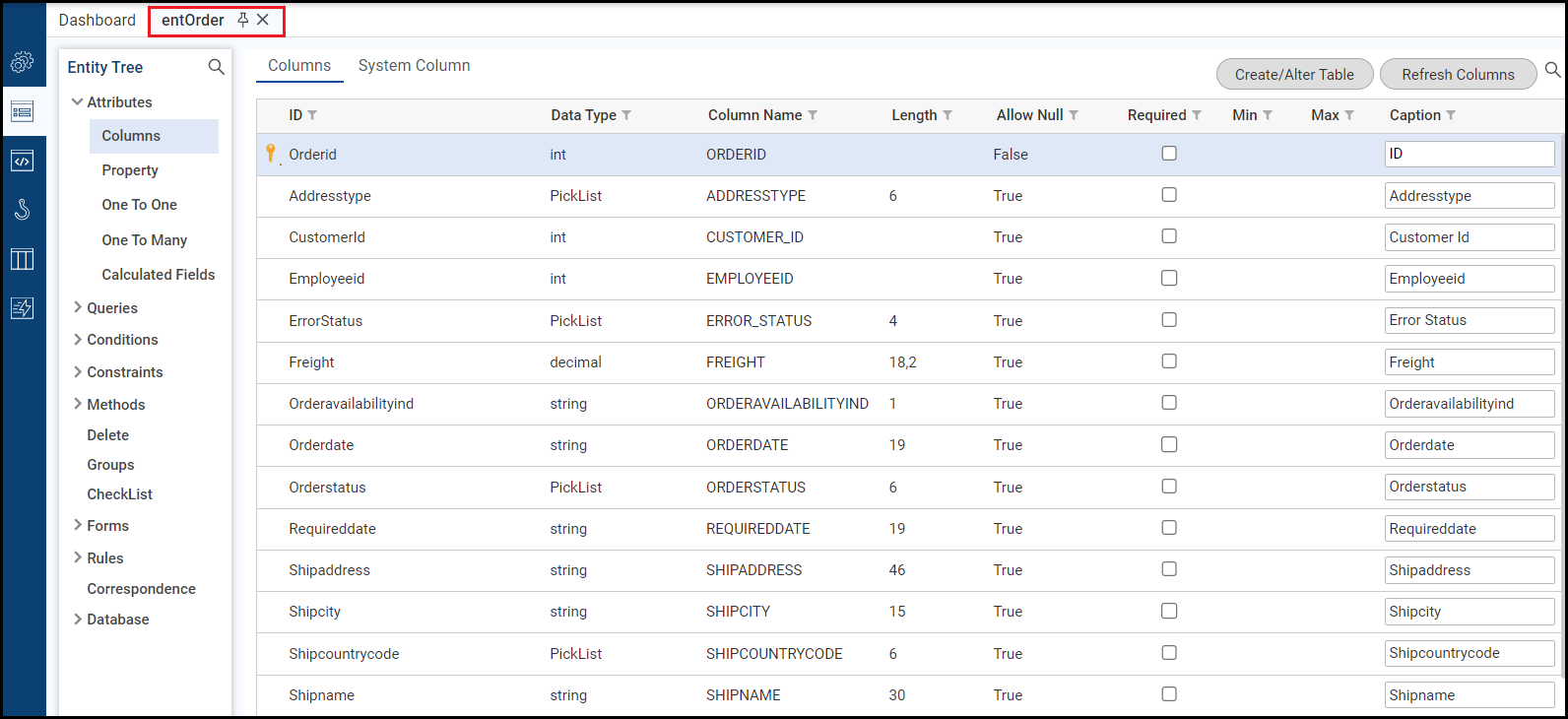 Click the Save icon to save the entity.