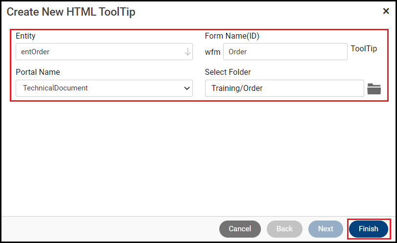 - ID: Programmatic ID of the tooltip. It populates automatically, but you can modify it. It will always be prefixed with wfm and suffixed with ToolTip.