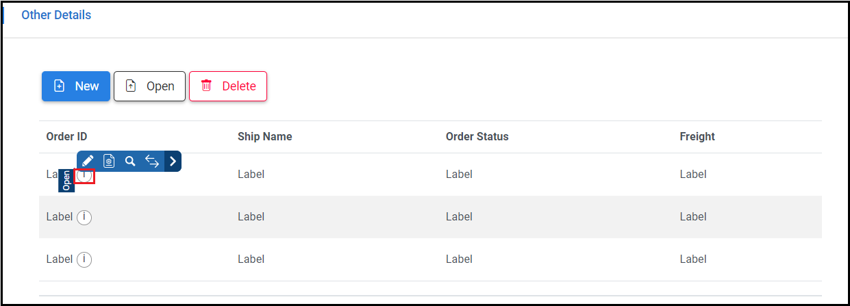 Drag and drop the Open button to the desired location. In this case, that's the data table column.
