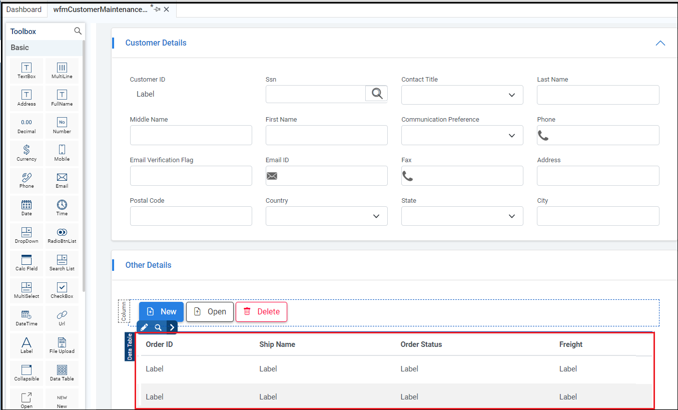 - The lstOrder data table must already be configured in wfmCustomerMaintenance form.