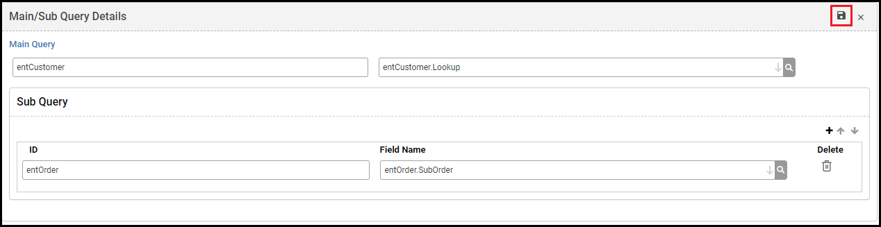 Click the Add Query icon. The Browse Queries window lets you browse for and enter only those queries whose Query Type is SubSelectQuery.