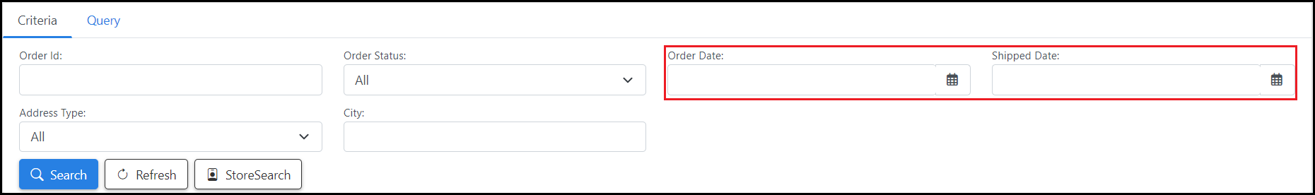 When you have previewed your form, it should look something like this. In the following example, the device is a Laptop, hence the device width is greater than 768. So, Order Date and Shipped Date both fields are present in the Criteria section.