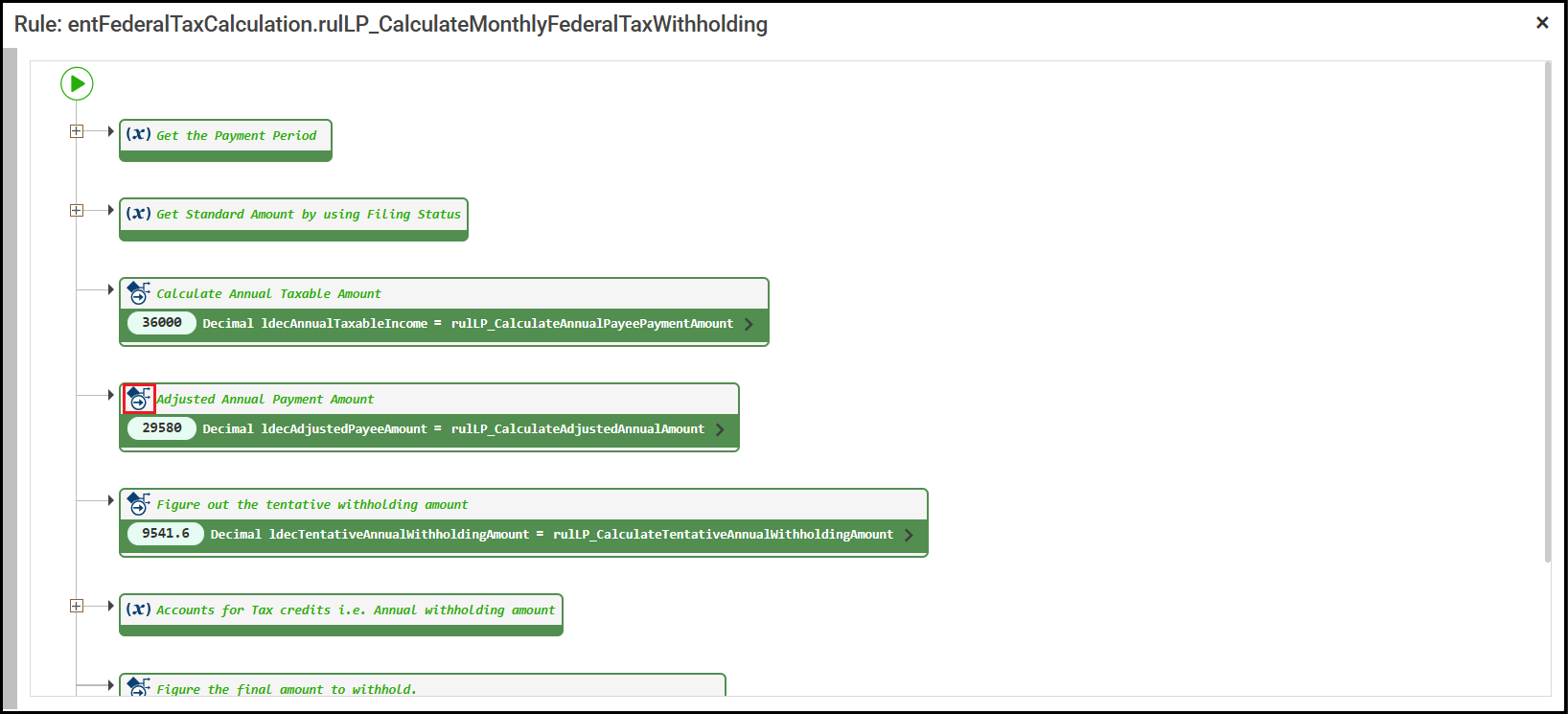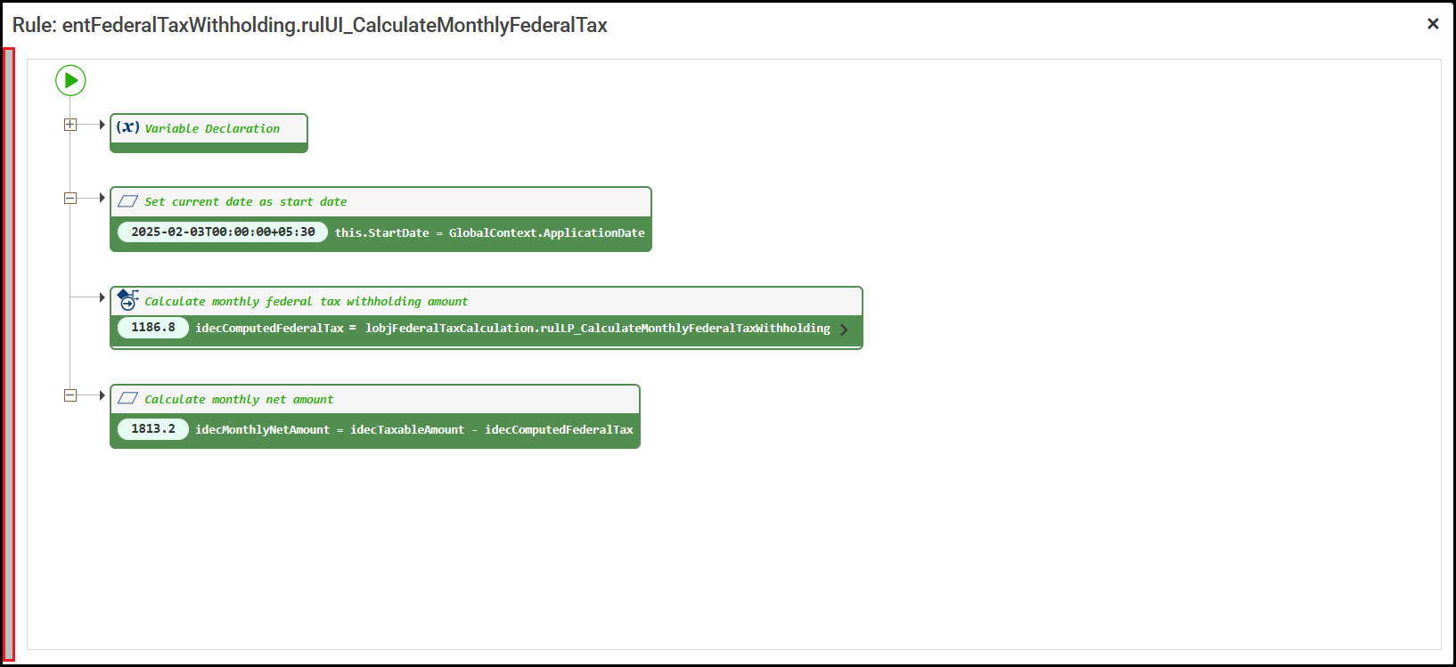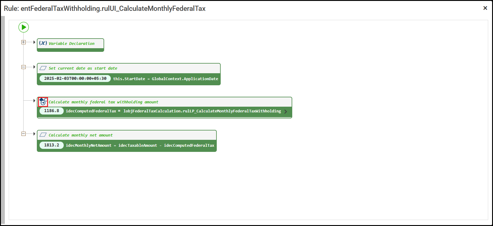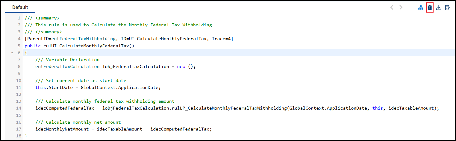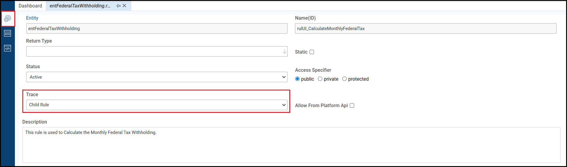 Open the logical rule for which you want the trace on. This example uses rulUI_CalculateMonthlyFederalTax.